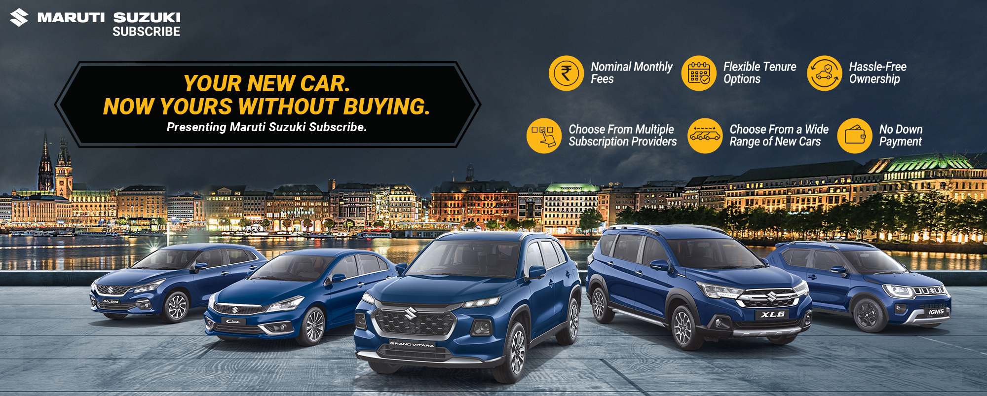 Maruti Suzuki Subscribe enables all customers to enjoy driving their preferred Maruti Suzuki cars without having to deal with all the financial responsibilities that come with owning a car.All you need to do is opt for a monthly subscription plan at a fixed monthly fee, which includes the routine maintenance and insurance costs, and choose a flexible tenure. At A M Motors in, Puthiyangadi, Calicut, all Hatchback, Sedan, SUV, the MUV models line-up includes Baleno, Invicto, EVitara, Jimny, Ciaz, Ignis, Fronx, Grand Vitara, XL6. Here, you will enjoy Maruti Suzuki Subscribe benefits such as: